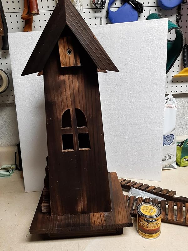 I liked the Staircase on the left side; the cutout on the left side to add string lights inside to come on, dusk to dawn. I wish it was already varnished with the Best Varnish for outdoors to protect from Sun, Rain and Moisture. Also, that it was heavier; because of our High Winds here in NM. I need to come up with an idea; to weigh it down.